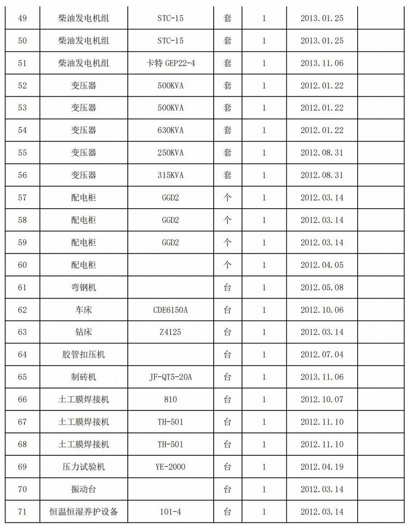本次擬處置廢舊設備71臺套,為我公司承建老撾工程項目時購置,購置時間為2012年。該批設備為永久進口老撾,停放在老撾沙灣拿吉塔班通的項目工地,距老撾首都萬象約650公里。