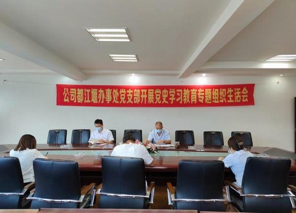 2021年8月11日,根據(jù)水利廳和水發(fā)集團(tuán)黨史學(xué)習(xí)教育的總體安排,按照公司黨史學(xué)習(xí)教育實施方案的要求,為推進(jìn)黨史學(xué)習(xí)教育,都江堰辦事處黨支部在都江堰水利大廈三樓會議室組織召開黨史學(xué)習(xí)教育專題組織生活會。緊緊圍繞“學(xué)黨史、悟思想、辦實事、開新局”為主題,認(rèn)真貫徹“學(xué)史明理、學(xué)史增信、學(xué)史崇德、學(xué)史力行”的總要求,對照“十大現(xiàn)象”和“六種表現(xiàn)”深刻查擺問題,檢視剖析問題,明確整改措施,盤點黨史學(xué)習(xí)教育的收獲以及努力方向。公司黨委委員、工會主席、黨委工作部部長夏永紅到會指導(dǎo),都江堰辦事處黨支部副書記李陵主持會議,全體黨員參加會議。