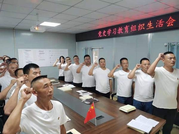 根據(jù)水利廳和水發(fā)集團黨史學(xué)習(xí)教育的總體安排,按照公司黨史學(xué)習(xí)教育實施方案的要求,為扎實推進黨史學(xué)習(xí)教育,2021年8月14日,一分公司黨支部在自貢小井溝支渠工程項目部會議室組織召開黨史學(xué)習(xí)教育專題組織生活會。一分公司經(jīng)理范雪山、副經(jīng)理王川、副經(jīng)理黃樹偉、總工程師李勇及支部全體黨員參加會議。黨支部副書記姜虎主持會議。