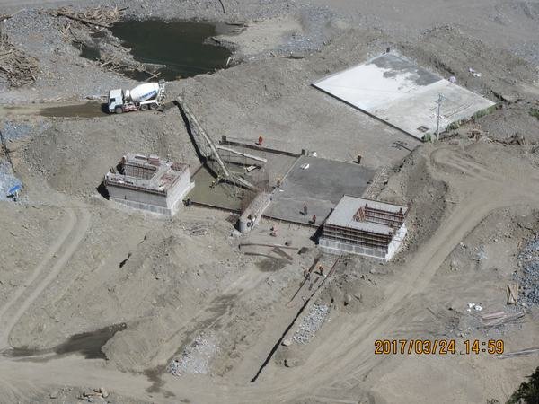 尾水橋橋臺施工尾水渠底板施工尾水渠擋墻基礎現(xiàn)場驗收壓力管道支鐓人工開挖三四溝電站全景
