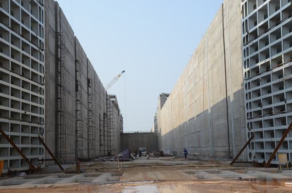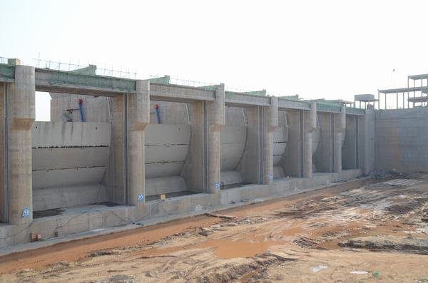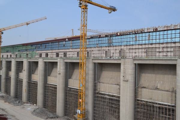 廠房前流道船閘下游公路橋蓋梁攔污柵閘墩下游魚道閘壩