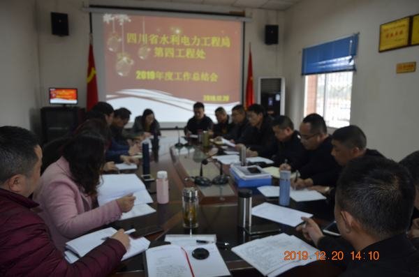 12月20日下午,局第四工程處在樂至毗河項目部組織召開2019年工作總結會,處領導班子成員及科級以上部門負責人參加會議。