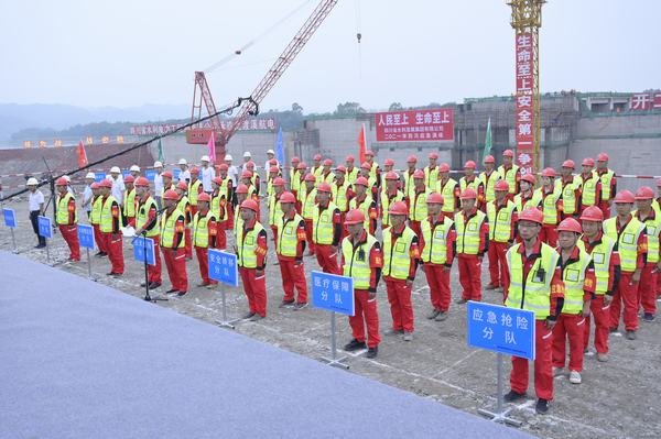 2021年5月21日10﹕30,四川省水利發(fā)展集團有限公司(以下簡稱“水發(fā)集團”)在眉山市青神縣岷江虎渡溪航電樞紐工程項目舉行2021年防汛應急演練,青神虎渡溪航電開發(fā)有限公司和四川省水利電力工程局有限公司承辦本次演練,參加演練觀摩的單位有四川省水利水電勘測設計研究院有限公司、都江堰水利產業(yè)集團有限責任公司、四川省亭子口灌區(qū)建設開發(fā)有限公司、四川省向家壩灌區(qū)建設開發(fā)有限責任公司。演練指揮長由水發(fā)集團黨委書記、董事長鐘杰擔任。