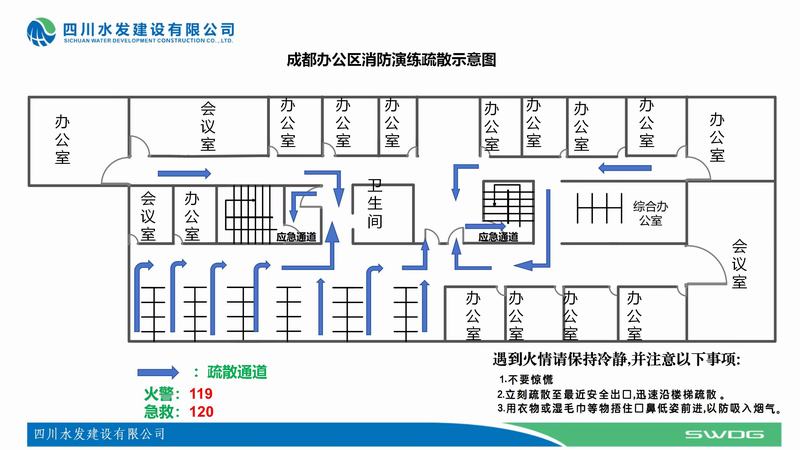 本次火災疏散逃生應急演練為建設公司持續營造“人人講安全、個個會應急、協同保安全、群防加群治”的消防安全氛圍打好了基礎,進一步提高了全體干部職工生命財產安全系數,為建設公司高質量發展擰好“安全閥”、戴好“安全帽”做出了表率。建設公司將繼續優化消防安全應急預案,在建設中以安全為基礎,在發展中以安全為底線,為加快推進四川骨干水網建設貢獻更大的力量。