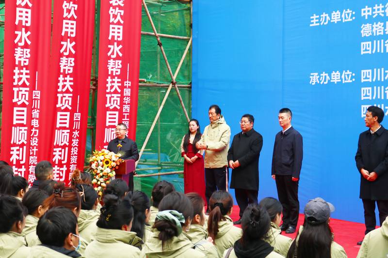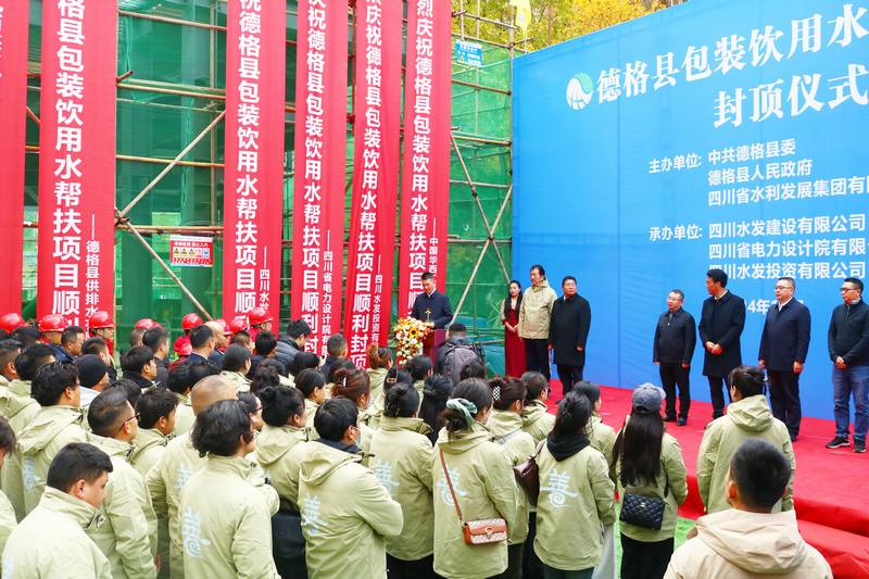 德格縣縣委書(shū)記昌呷次稱在講話中代表縣委、縣政府以及德格縣父老鄉(xiāng)親向蒞臨出席活動(dòng)及關(guān)心德格縣發(fā)展的領(lǐng)導(dǎo)、來(lái)賓表示衷心的感謝和崇高的敬意。他強(qiáng)調(diào),水發(fā)集團(tuán)堅(jiān)決貫徹省委部署要求,傾注真情實(shí)感、投入真金白銀、用力真幫實(shí)扶,不斷為鞏固拓展脫貧攻堅(jiān)成果、全面助推德格縣鄉(xiāng)村振興注入新動(dòng)力。下一步,期望各方進(jìn)一步加強(qiáng)工作統(tǒng)籌、力量統(tǒng)籌和資源統(tǒng)籌,攜手構(gòu)建高質(zhì)量發(fā)展共同體,讓愛(ài)心永放光芒、讓真情共筑希望,共同譜寫(xiě)德格縣高質(zhì)量發(fā)展新篇章;最后,熱烈祝賀并宣布德格縣包裝飲用水幫扶項(xiàng)目封頂儀式圓滿禮成。