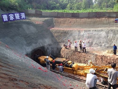 2015年6月9日,太陽剛剛升起,毗河供水一期工程曹家隧洞出口的工地上已是一片繁忙的景象。上午9時,該工程項目副經理孫紹陽一聲令下,鞭炮與機械齊鳴,工程局第四工程處第二臺懸臂式掘進機正式開鉆。