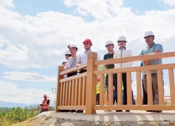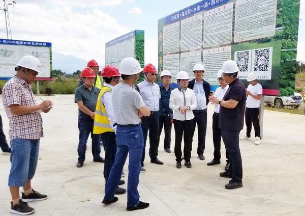 代勇對王涼萍副縣長一行的蒞臨表示誠摯歡迎,并在龍?zhí)另椖繝I地全面介紹了集團公司、工程局公司的情況。王涼萍一行隨后到正在施工作業(yè)的拌合場、篩分場、樞紐等施工部位考察并聽取了施工情況介紹。