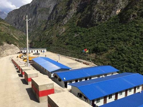 水洛河潺潺的流水,斜陽映襯著青翠的山巒。在這美麗的山水圖畫間,天藍(lán)色的板房錯(cuò)落有致,嫩芽初上的花臺(tái)上隨風(fēng)飄揚(yáng)的徽旗略顯莊嚴(yán),白灰色的籃球場上時(shí)而傳來陣陣喝彩……博瓦水電站首部樞紐工程項(xiàng)目經(jīng)理部臨建設(shè)施已建成投用。