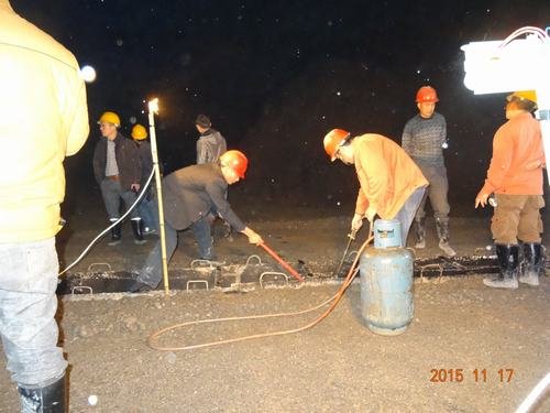 工程局筠連縣后溝水庫樞紐工程項目經(jīng)理部經(jīng)理、副經(jīng)理、總工等靠前冒雨現(xiàn)場指揮,爭分奪秒搶工期,努力實現(xiàn)2015年12月20日全面完成瀝青砼芯墻和壩體填筑的奮斗目標(biāo),為2016年3月底全面完成各項施工任務(wù)奠定堅實基礎(chǔ)。