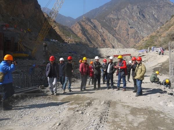2016年1月19日下午,由華電集團(tuán)云南魯?shù)乩靖笨偨?jīng)理魏永新、烏江項(xiàng)目公司副總工程師黃鵬、孫華剛、雜谷腦公司辦公室主任李曉莉、梨園電站計(jì)劃部主任鄭修軍、華電集團(tuán)公司項(xiàng)目經(jīng)理邵增富、華電國際四川分公司基建部副主任李宏國、四川公司基建部專責(zé)李勇等人組成的專家組,在水洛河公司固滴建管部主任楊樂、新藏建管部主任何宇、博瓦建管部主任楊杰及固滴設(shè)計(jì)、監(jiān)理等一行的帶領(lǐng)下,蒞臨固滴電站首部樞紐工程施工現(xiàn)場對(duì)2015年度工程建設(shè)達(dá)標(biāo)投產(chǎn)進(jìn)行檢查,考核內(nèi)容包括現(xiàn)場安全文明施工、土建工程質(zhì)量與工藝,局鑫宏工程公司經(jīng)理毛偉、黨支部書記甘曉華、項(xiàng)目部總工鄭中華全程陪同。