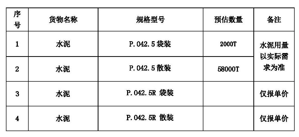 采購范圍:水泥總用量約6.0萬噸,采購數量以實際需求數量為準。工程施工總工期為42個月。
