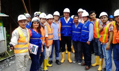 截流儀式之前,厄瓜多爾副總統(tǒng)率學(xué)生團(tuán)隊到我部施工的地下廠房、尾調(diào)室及交通洞進(jìn)行了視察,對項目工程質(zhì)量、安全、進(jìn)度給予了高度評價和肯定,并與該項目中厄員工合影留念。